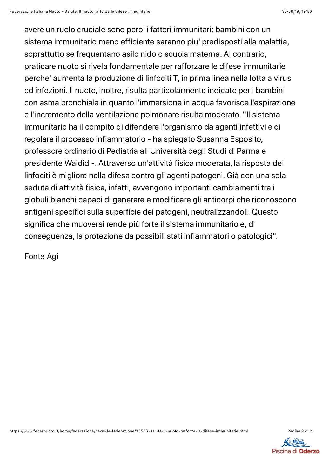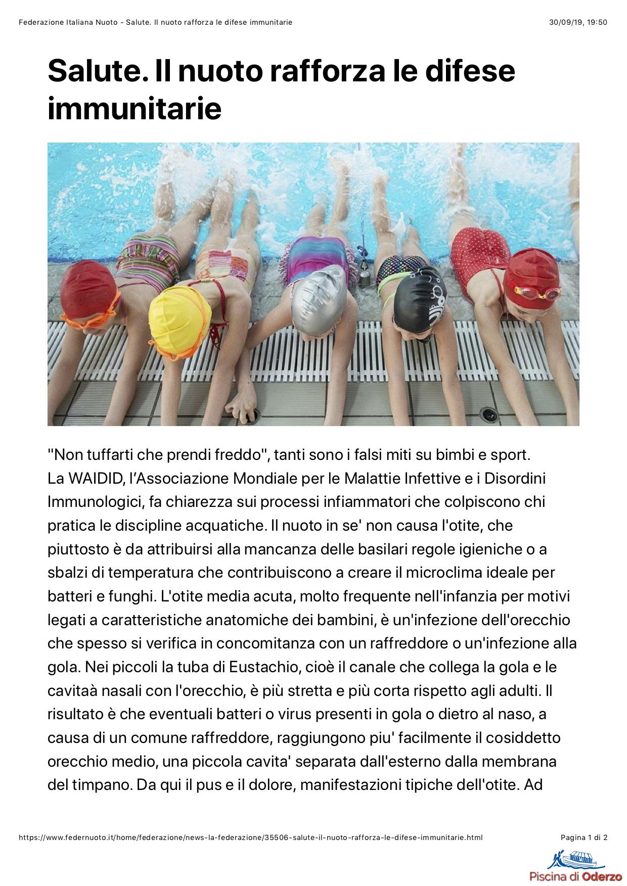 Salute. Il Nuoto rafforza le difese immunitarie. Articolo del 04/10/2019 ‹ › × × Diffondiamo questo interessante articolo pubblicato da FEDERAZIONE ITALIANA NUOTO. Scarica il pdf oppure clicca sulle foto. Documenti allegati PDF 109.79 KB Commenti Abilita JavaScript per visualizzare i commenti tramite Disqus.