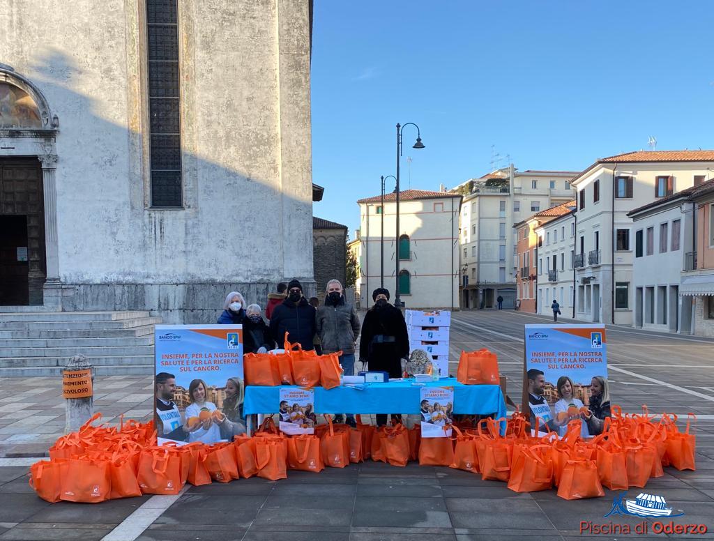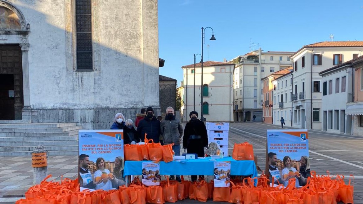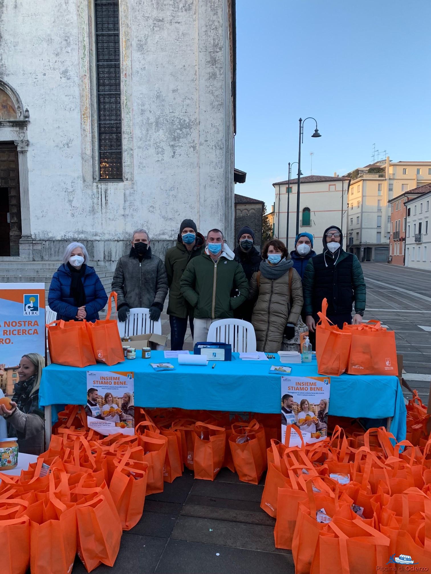 Sabato 23 gennaio 2022 Piazza Grande ad Oderzo si è colorata d’arancio per lo svolgimento della manifestazione nazionale “Le Arance della Salute” a sostegno alla raccolta fondi a favore della Associazione Italiana per la Ricerca sul Cancro attraverso la distribuzione di reticelle di arance, frutto simbolo di sana alimentazione. I cittadini non si sono scoraggiati per le rigide temperature del periodo ed hanno risposto positivamente all’iniziativa sia nelle piazze di Oderzo e di Vazzola, e in tutte le piscine gestite della società Arca che è referente AIRC di zona, permettendo la raccolta di fondi per € 8.335,00.