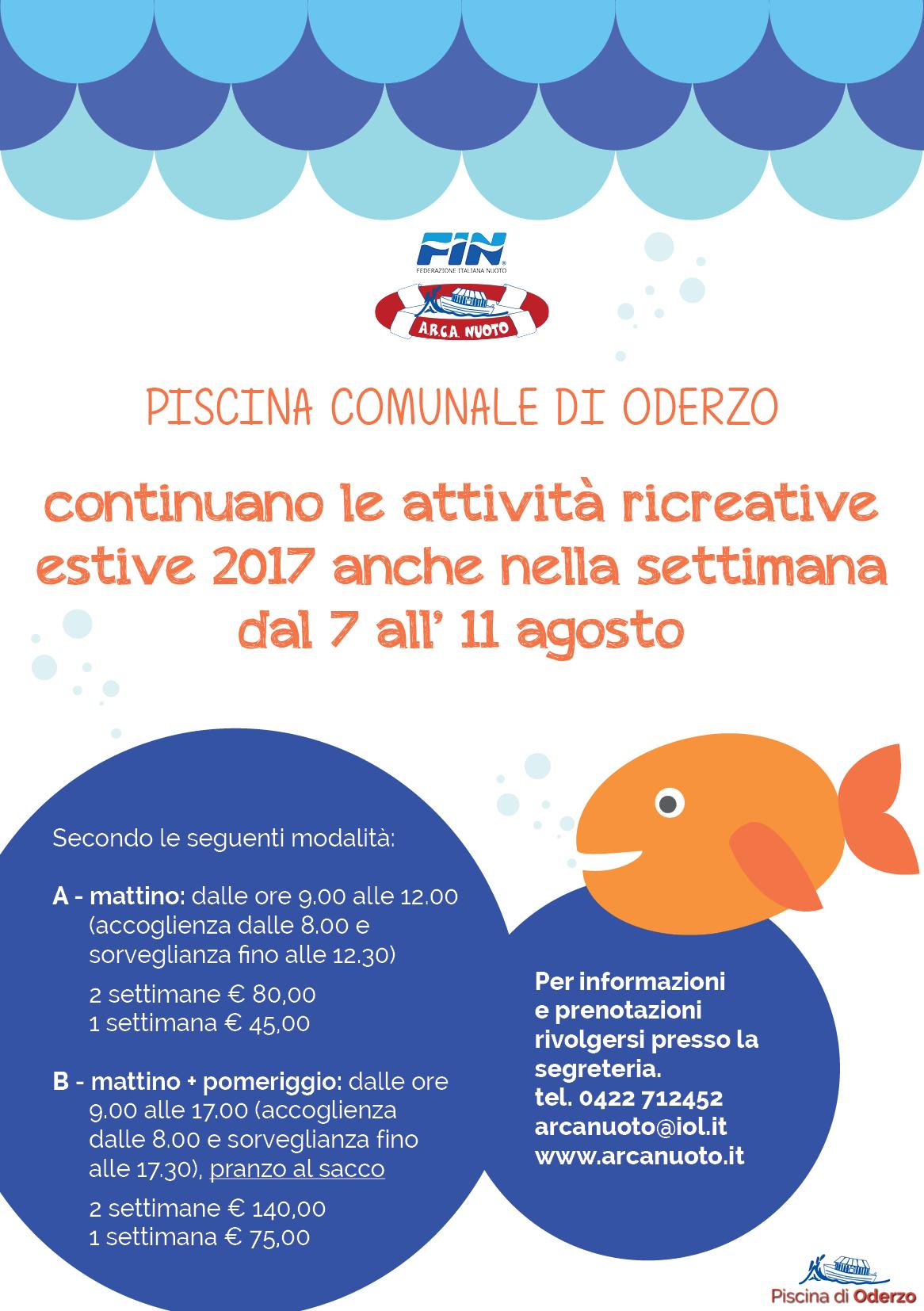 Le attività ricreative estive saranno proposte anche dal 7 agosto all'11 agosto.